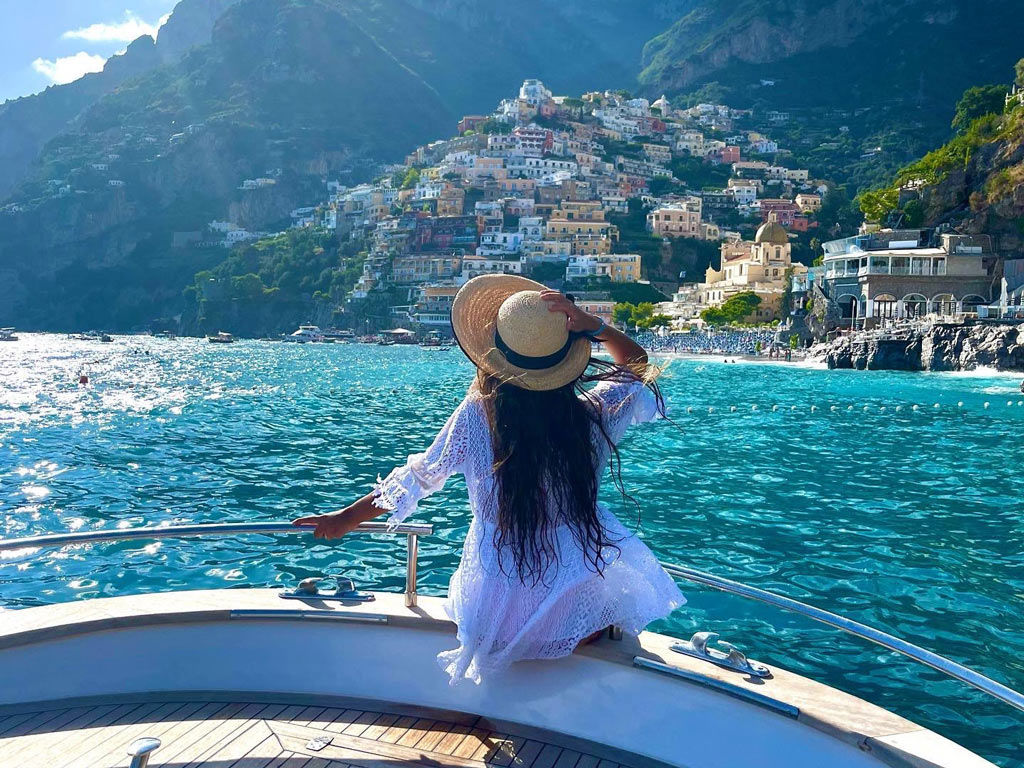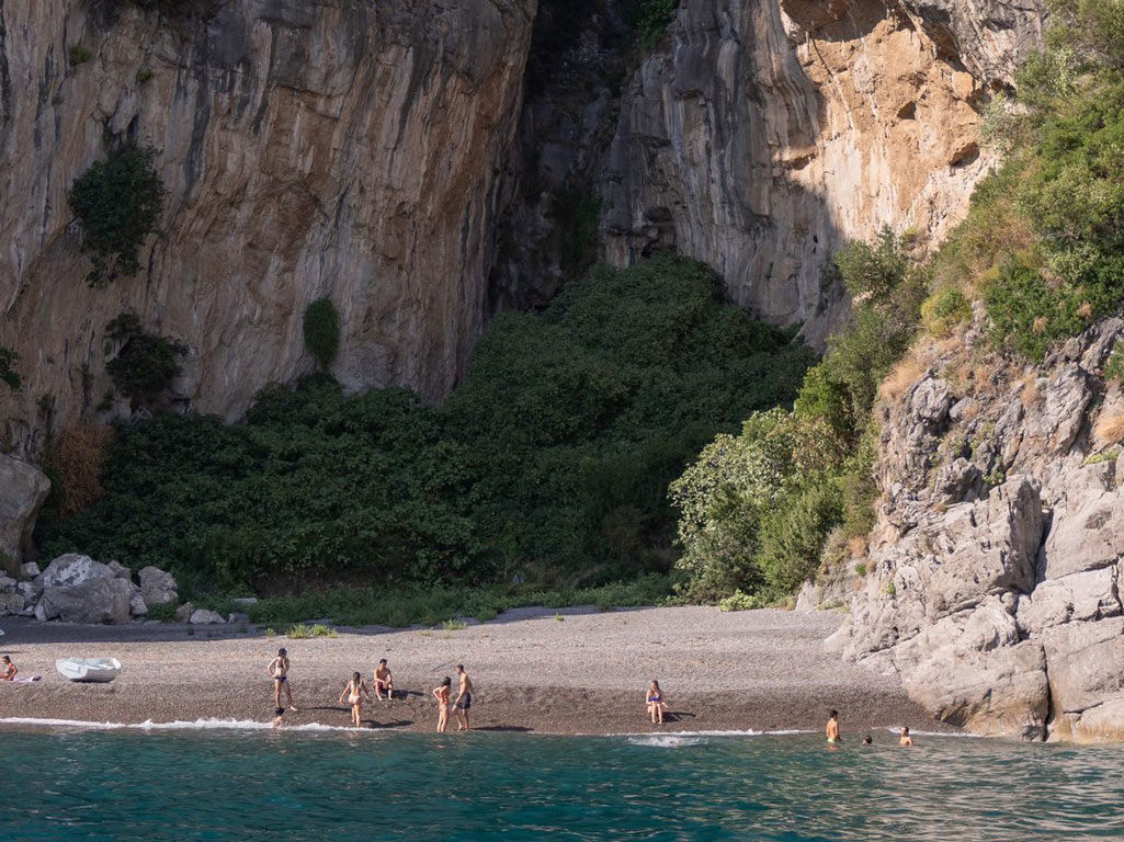 The first stop is Praiano, where you’ll pass by the picturesque beaches of Gavitella and Marina di Praia, two hidden gems nestled between dramatic cliffs.
