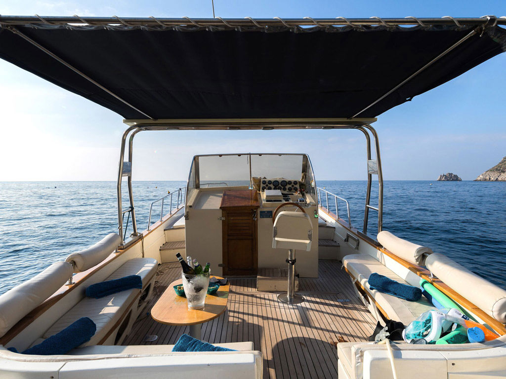 On the boat, you will find a wide selection of soft drinks and a bottle of Prosecco for a fancy toast, while admiring the dark-blue sky, the shining stars, and the many fireworks with Positano as a main background.
