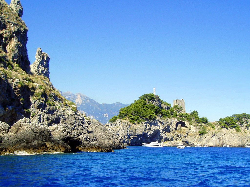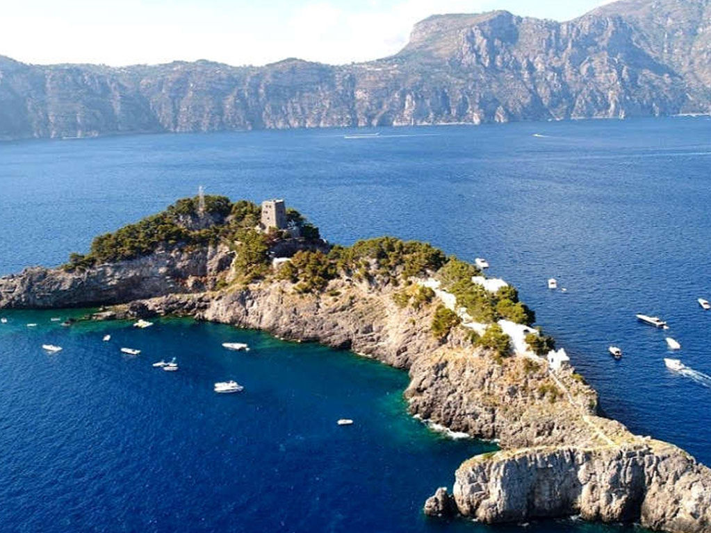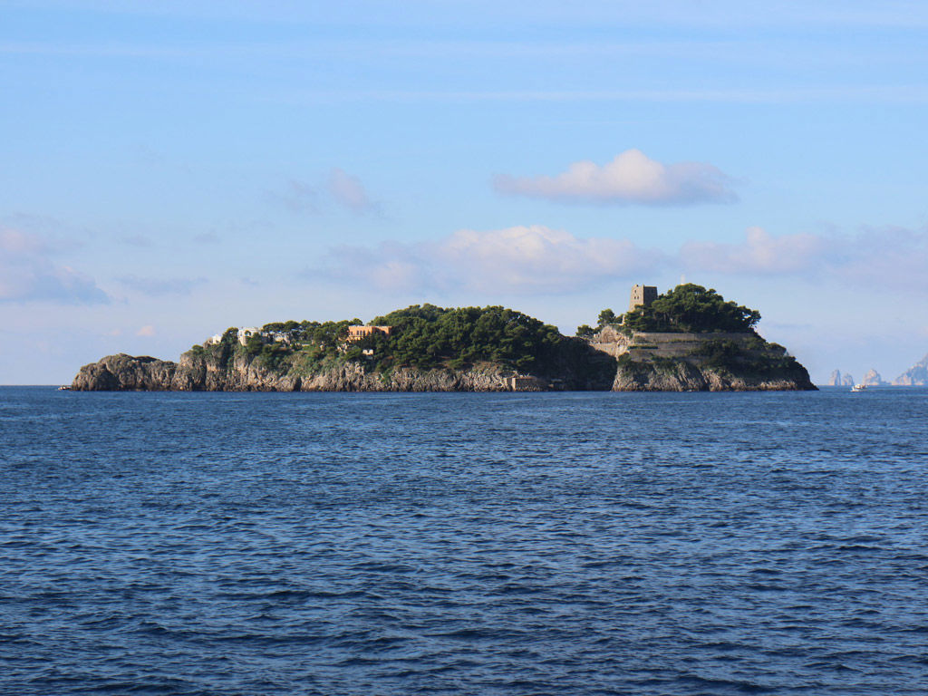 On the way to reach the island you will notice the splendid bay of Fornillo with the two Saracen towers: the Torre Trasita and the Torre Clavel.