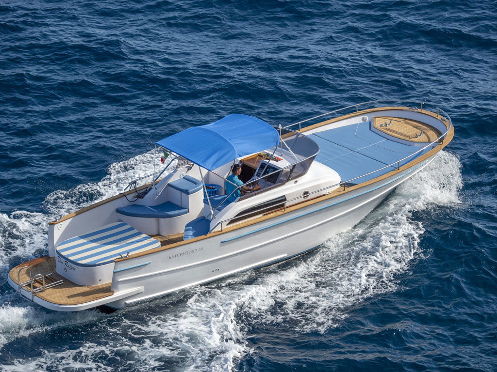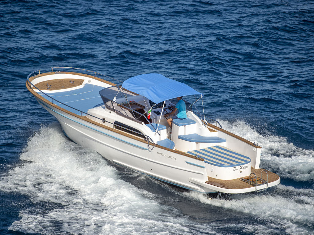 "Don Raffaè" is equipped with all comforts such as a private cabin with a bathroom and a bed, and in the back a swimming platform with a ladder to descend into the water.