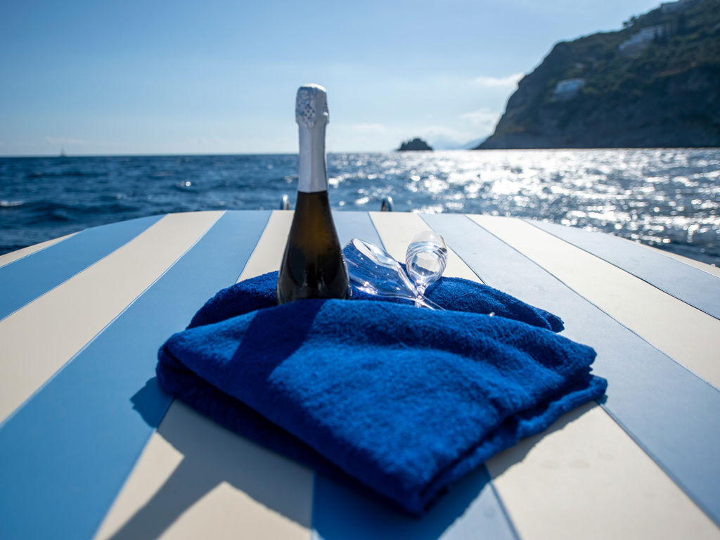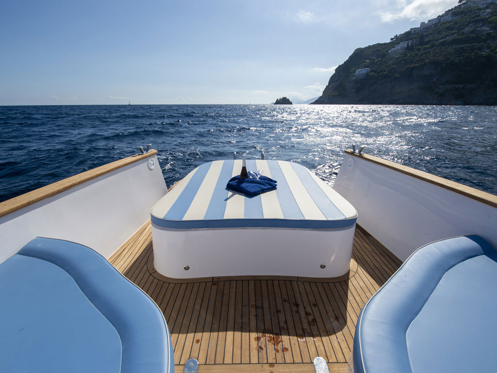 This Gozzo boat is perfect for exploring the island of Capri or the Amalfi Coast and the neighbouring islands, with a half or full-day private tour.