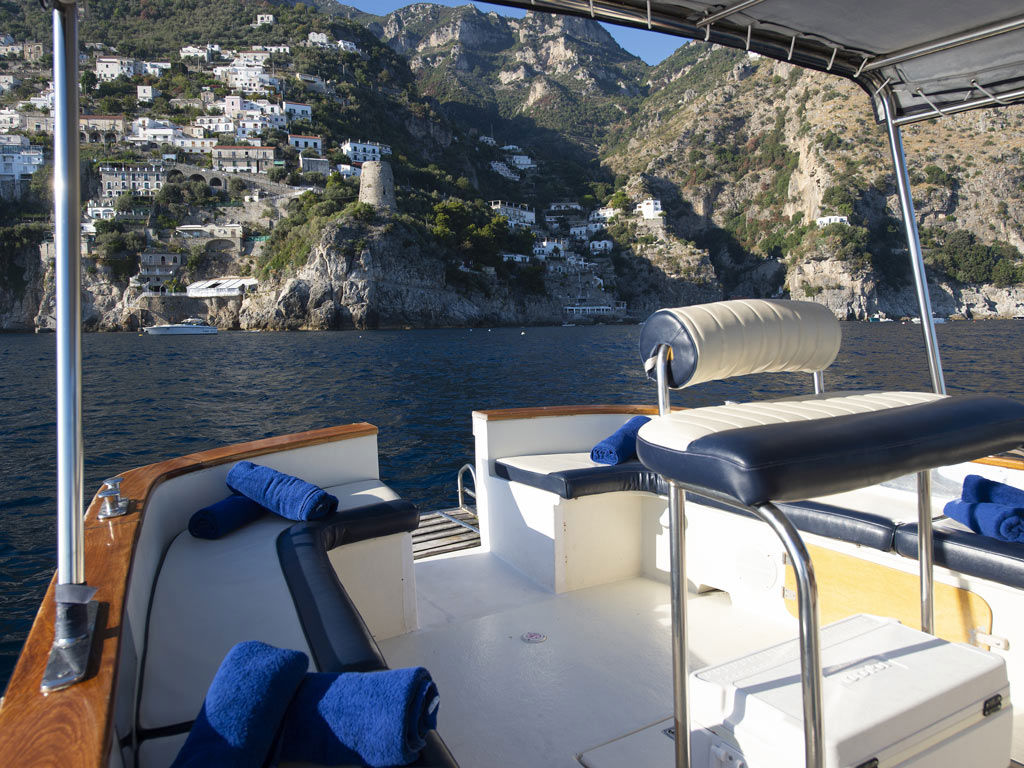The “Mr Luigi” is provided with a comfortable sun deck perfect for admiring comfortably the beauties of the Amalfi Coast or the island of Capri. The boat is also equipped with radio, towels and mini bar with drinks and snacks.