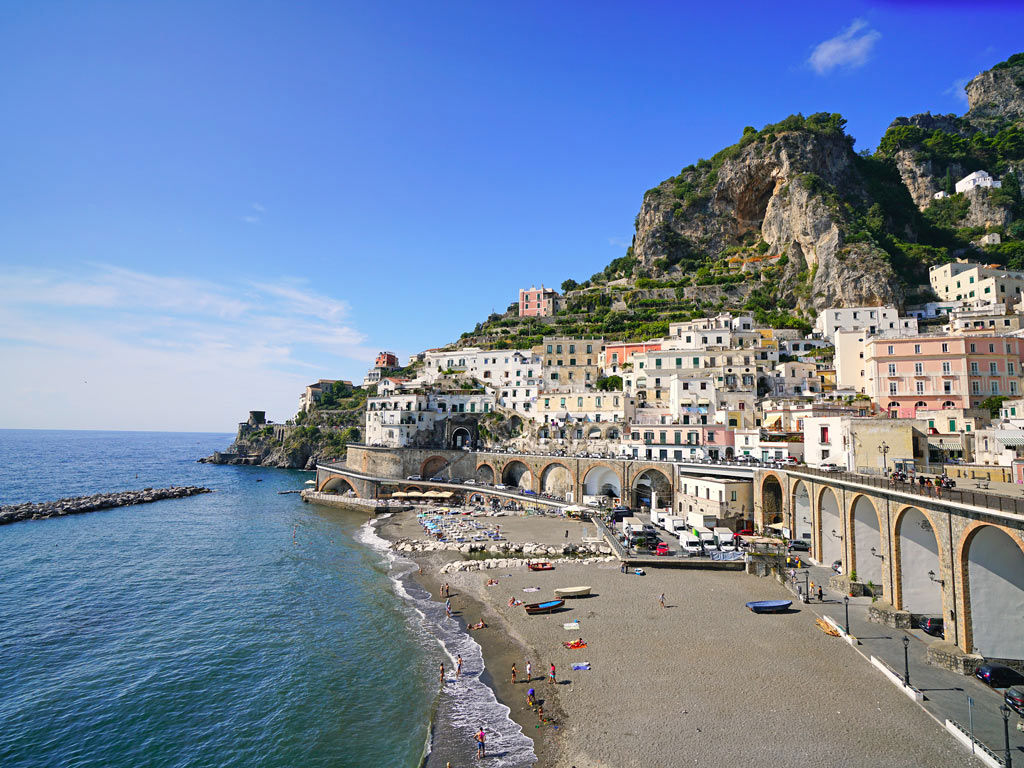 Before getting off in Amalfi, we will reach the Amalfi Coast’s smallest town: Atrani with its natural waterfalls of Marmorata.