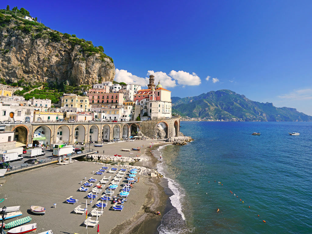The tour will then continue passing through Conca dei Marini where you can admire the Capo di Conca Tower and the Natural Arch, Amalfi with its beaches up to Atrani where you will see the Marmorata waterfalls.