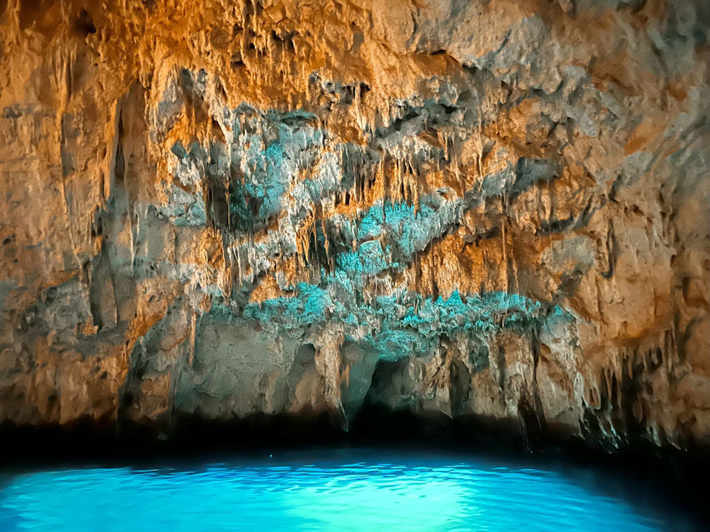 Next, you will pass by the enchanting Emerald Grotto. The entrance ticket is not included in the price and the visit is optional, therefore you can either decide to enter the grotto or just wait on the boat.