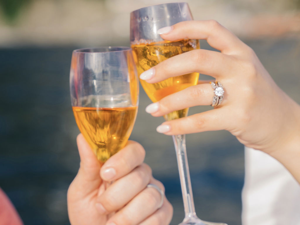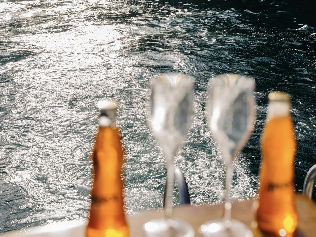 With the sun gradually setting, enjoy a glass of prosecco and some snacks on board.