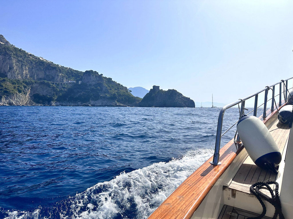 The next town you will encounter is Praiano, which has fantastic landscapes to be admired from the sea such as La Gavitella beach, the Africana Grotto and the enchanting fishing bay of Marina di Praia.