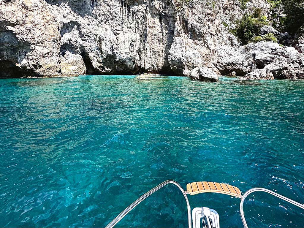 If you desire, you can make a stop to visit the “Grotta dello Smeraldo”. A unique karst cavity, which was discovered in 1932 by a local fisherman. It is a cave full of stalagmites about 30 meters high and is partly invaded by the sea. At certain times of the day, sunlight penetrates inside and illuminates the cave making the water of a color similar to emerald.