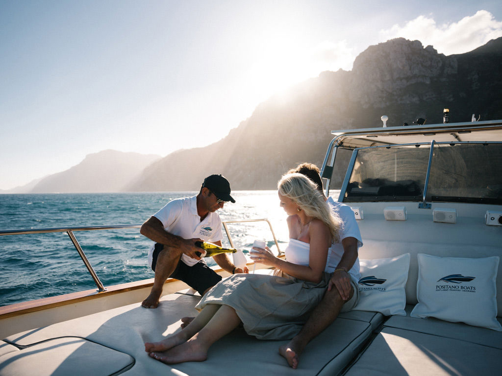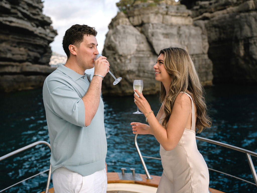 On the way back to Positano, you will enjoy an amazing sunset with a little aperitif on board in front of the famous Li Galli Island. This archipelago is made up of three islets: Gallo Lungo, La Rotonda and Isola Dei Briganti, the perfect spot for romantic cheers at the end of the day with the view in the distance of Positano.