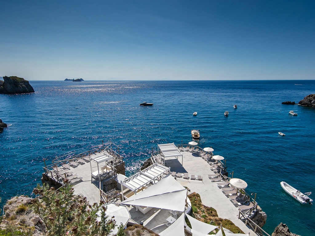 The restaurant and beach club sit in the crescent-shaped Recommone Bay outside the small town of Nerano, which can be found on the northern tip of the Amalfi Coast.