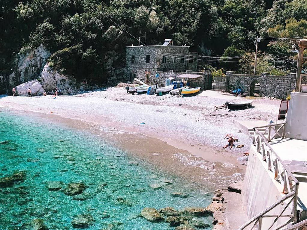 This gorgeous setting evokes images of a Mediterranean paradise, with a sparkling sapphire sea lapping a pebbly beach and the scent of evergreen pines infusing the air.